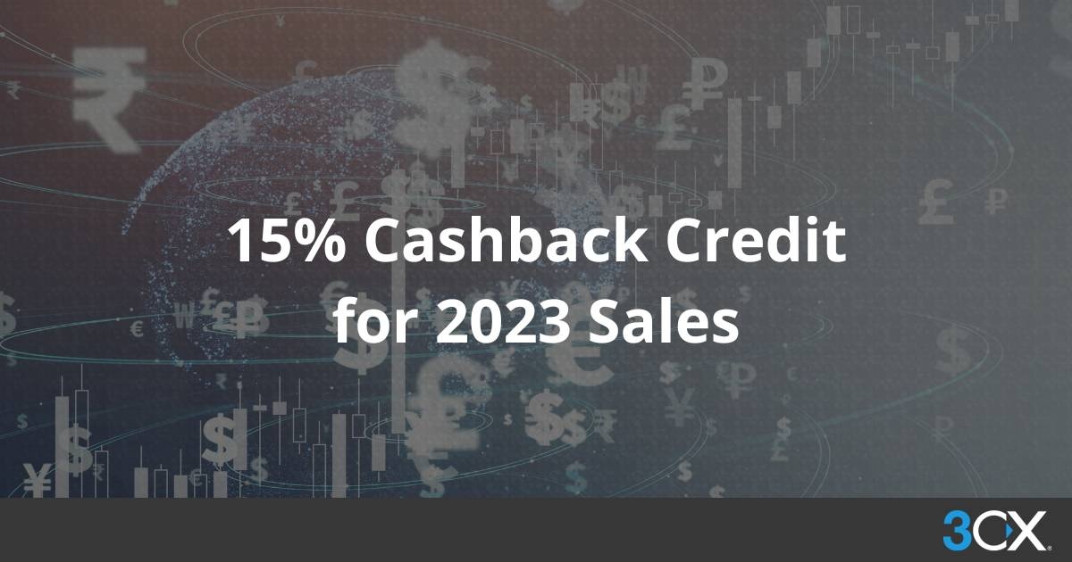 Equilibrando la recompensa por la lealtad, con la realidad del impacto en su negocio luego del ataque de seguridad cibernética 3CX, a fines de 2023 se brindara un reembolso del 15 %. En términos prácticos, al final de este año se agregará un crédito a su cuenta de Socio 3CX equivalente al 15% de sus ingresos de 2023, como efectivo para futuras compras de licencias.