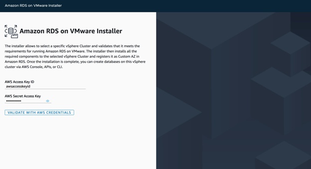 Después de seleccionar el clúster de vSphere, todo lo que tiene que hacer es crear una zona de disponibilidad personalizada en la consola de AWS RDS y descargar el instalador.