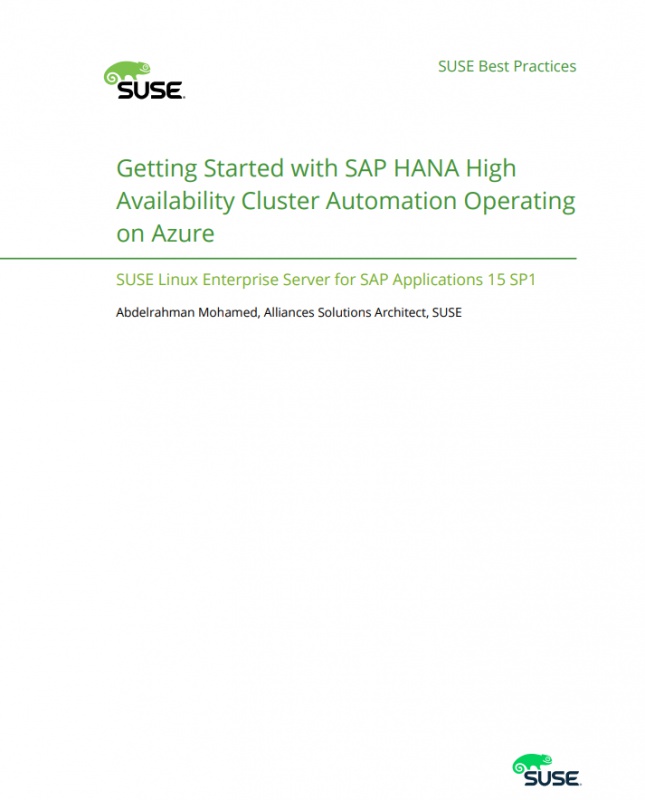 Publicado el documento SUSE " Introducción a la automatización de clústeres de alta disponibilidad de SAP HANA que funciona en Azure ". Esta guía tiene como objetivo explicar cómo construir un clúster de alta disponibilidad optimizado de replicación del sistema SAP HANA (SR) que funcione en la nube pública de Microsoft Azure.