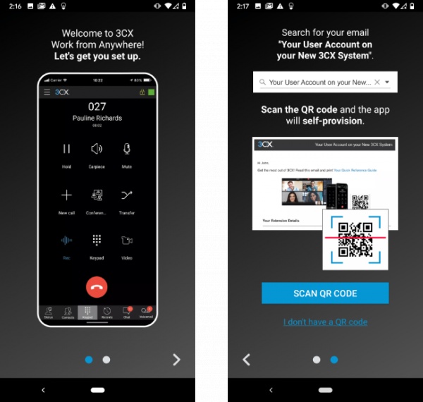 Ahora es aún más fácil y rápido comenzar con la aplicación de Android. El asistente de configuración se ha simplificado para que las extensiones de los usuarios se proporcionen en solo un par de pasos, lo que les permite comenzar con el sistema telefónico y volver a la personalización menos importante más adelante.
