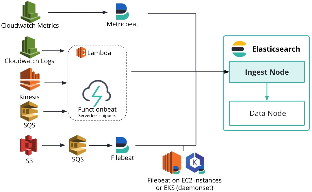 - Aprovechamiento de Functionbeat como función Lambda sin servidor para recopilar registros y eventos de CloudWatch de SQS y Kinesis