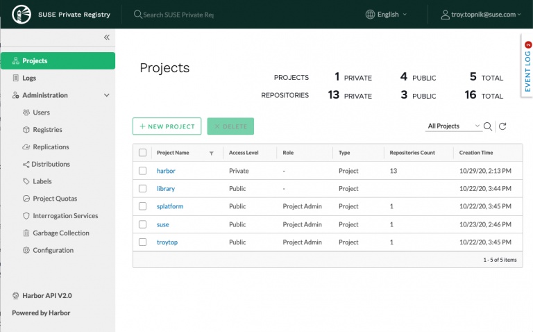 SUSE ha estado trabajando en un proyecto emocionante que ahora esta listo para compartir con una audiencia más amplia. SUSE Private Registry (con tecnología de Harbour 2.1) proporciona un componente central de una plataforma de entrega de aplicaciones nativas en la nube. Es un registro de OCI para almacenar, replicar, administrar y proteger imágenes y artefactos de Open Container Initiative (OCI).