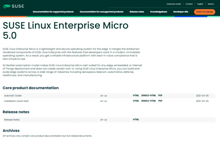 Para SUSE Linux Enterprise Micro 5.0 , se ha publicado la siguiente documentación (un enorme "gracias" para Jana Halackova por los documentos y Lukáš Kucharczyk por las notas de la versión):