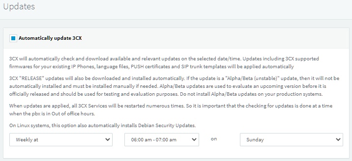 Usuarios existentes: aquellos que ya están en la Actualización 7, es importante habilitar "Actualizar 3CX automáticamente" para asegurarse de recibir las últimas actualizaciones de seguridad.