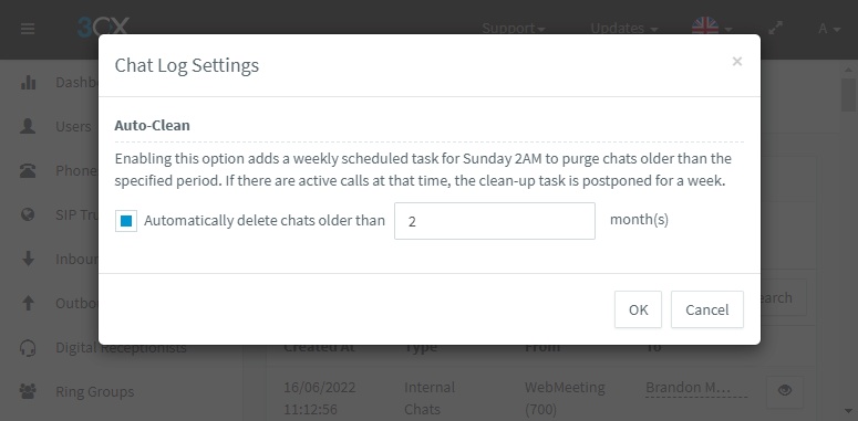 Todos los datos se almacenan localmente en la Instancia 3CX que se utilizó para administrar la sesión de chat en vivo. Esto garantiza el cumplimiento de GDPR y también significa que los administradores tienen control total de la pista de auditoría. Los datos confidenciales se pueden eliminar automáticamente con una opción de eliminación automática después de X meses.