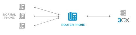 Todo el tráfico de llamadas entre teléfonos IP que se ejecutan a través de un teléfono enrutador se mantiene local. Esto tiene 2 beneficios. Primero, reduce el ancho de banda requerido, ya que el tráfico no sube al 3CX y viceversa. En segundo lugar, si hay una interrupción en la conectividad a Internet, las llamadas locales entre teléfonos IP aún son posibles.