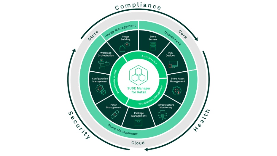 Administre, proteja, automatice y cumpla con la versión más reciente de la solución de administración de infraestructura de SUSE para la industria minorista