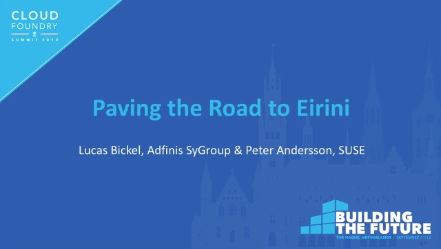 En la reciente Cumbre Cloud Foundry de la UE en los Países Bajos , Lucas Bickel de Adfinis SyGroup y Peter Andersson de SUSE presentaron información sobre su implementación de Cloud Foundry utilizando SUSE Cloud Application Platform para una gran oficina gubernamental suiza.