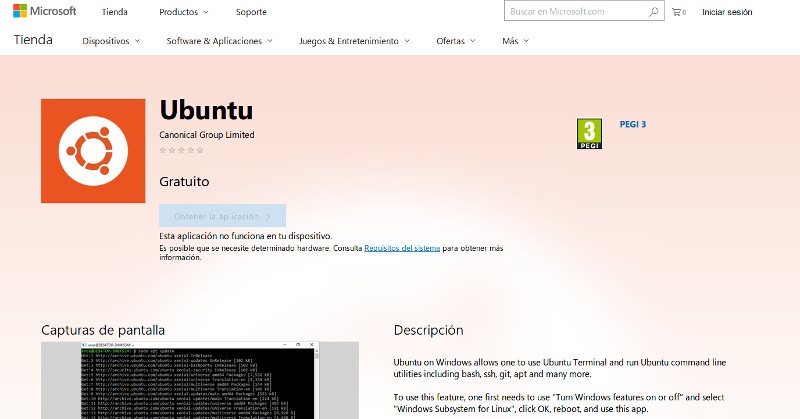 “Subsistema de Windows para Linux”; luego de ello vamos a la tienda e instalamos el sistema operativo completo.