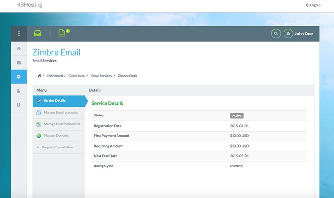 El módulo Zimbra para HostBill está dirigido al aprovisionamiento y gestión automatizados de cuentas Zimbra. Las opciones de facturación flexibles le permiten cobrar por la cantidad de dominios, alias, listas de distribución e incluso clase de uso de servicio o espacio adicional en el buzón. El módulo brinda a sus clientes acceso para administrar fácilmente sus buzones de correo y realizar un seguimiento del uso directamente desde el área de clientes con muchas funciones. Lo que es importante, usted elige qué funciones del cliente están habilitadas: ¡puede controlar el acceso y la apariencia de las funciones del área del cliente en su panel de administración!