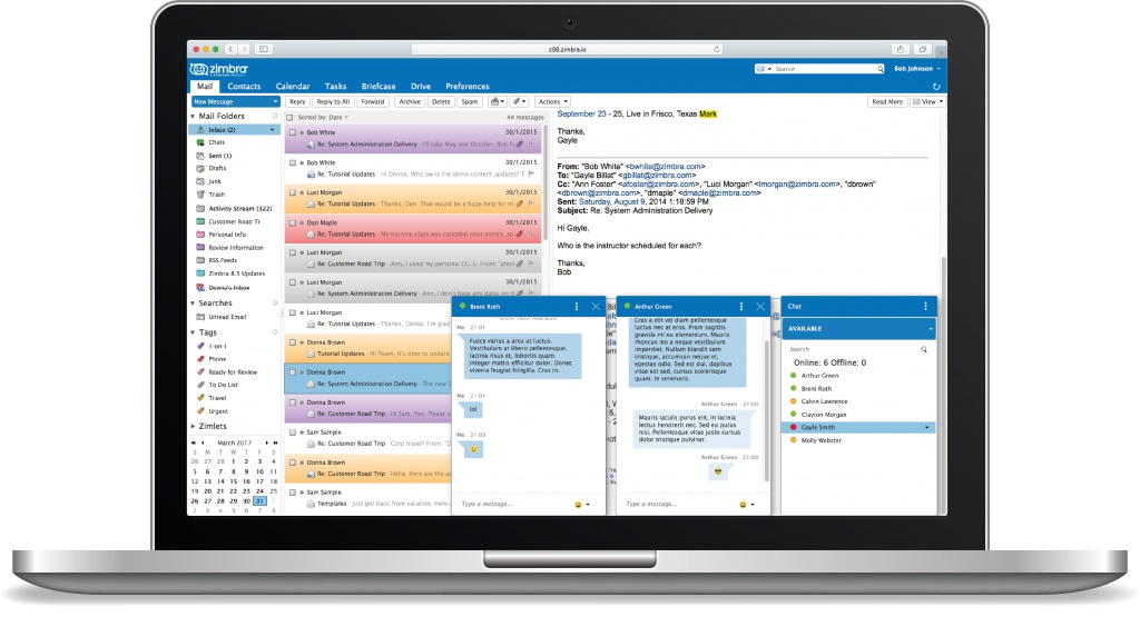 Zimbra 8.8 marca el comienzo de una nueva era con la introducción de peer-to-peer Zimbra chaty Zimbra Drive en todas las versiones de Zimbra y una revisión completa de los principales componentes listos para la empresa de Zimbra Network Edition.