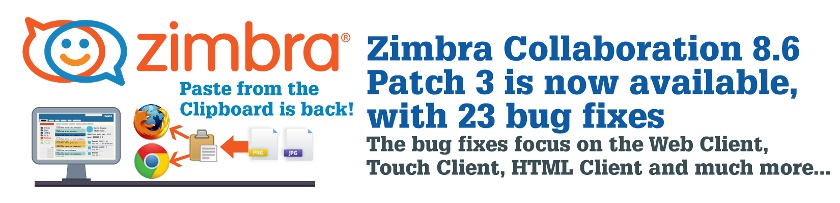 Tal cual informan desde el blog oficial de Zimbra; se acaba de lanzar una actualización con la corrección de 12 errores presentes en el cliente web. Por supuesto desde Linware recomendamos que todas las versiones de Zimbra Collaboration 8.6.0 instalen este parche. El mismo es una versión acumulativa del Patch 1 y 2, por lo que sólo el Parche 3 es necesario, obviamente en caso de que no se haya instalado los anteriores.